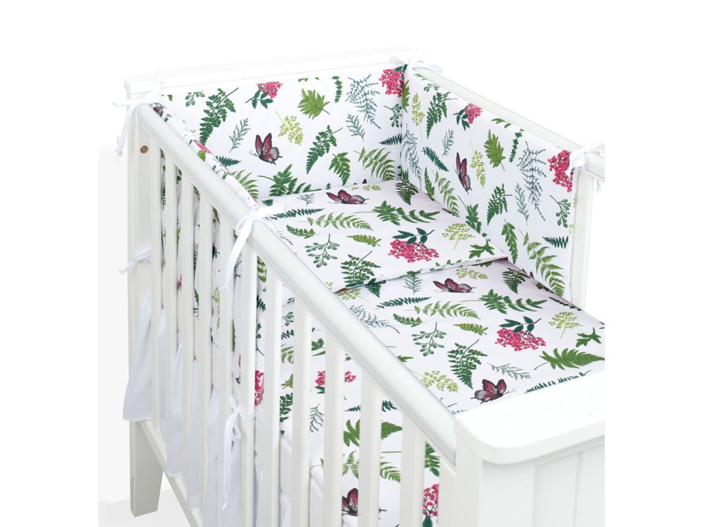 2-dílná sada povlečení s výplní do postýlky, Kapradí, bílá/zelená