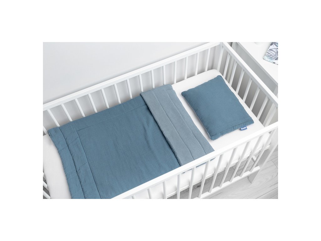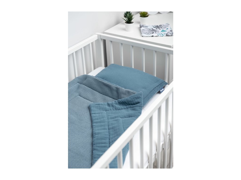 2D Pletený komplet nejen do dětské postýlky s mušelínem - mořsky modrá