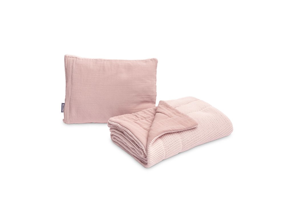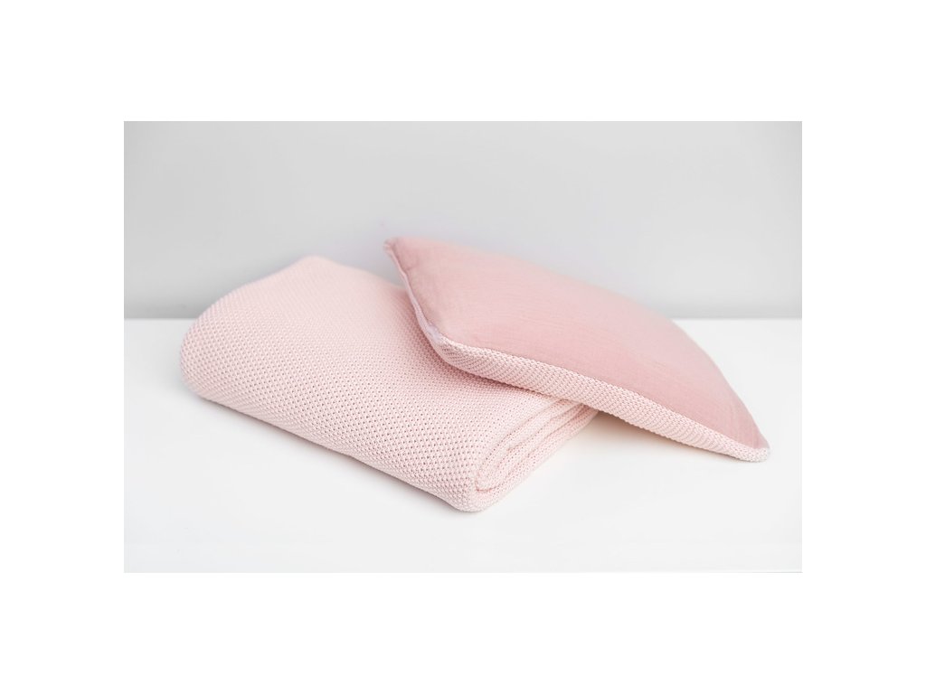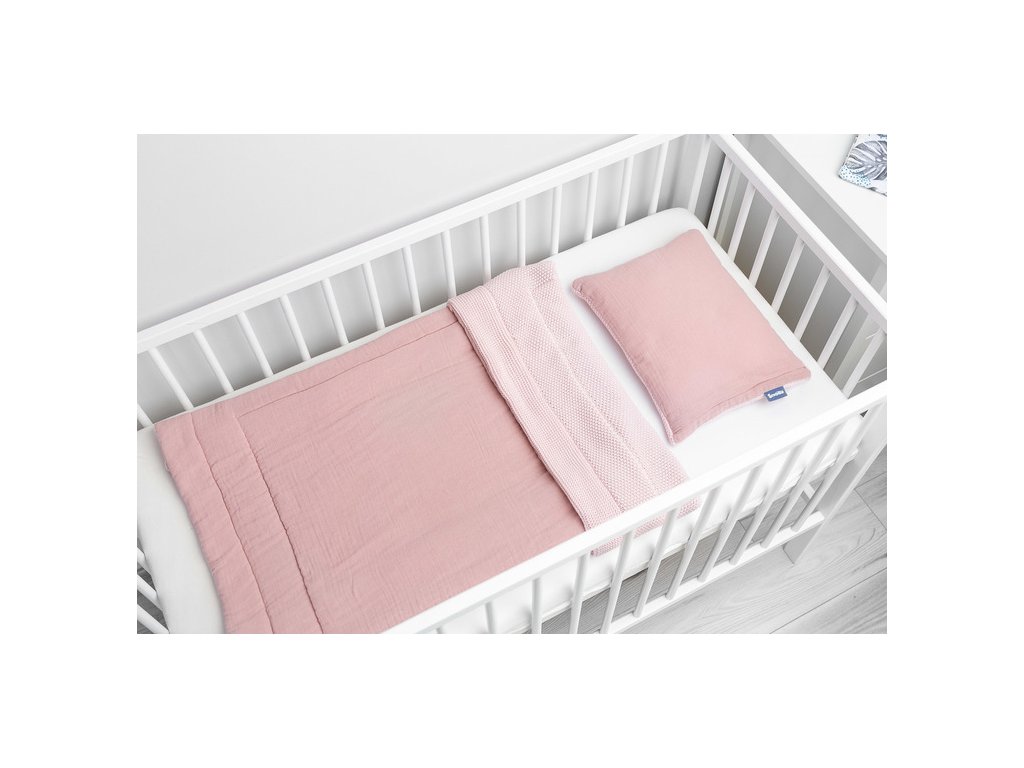 2D Pletený komplet nejen do dětské postýlky s mušelínem - růžový