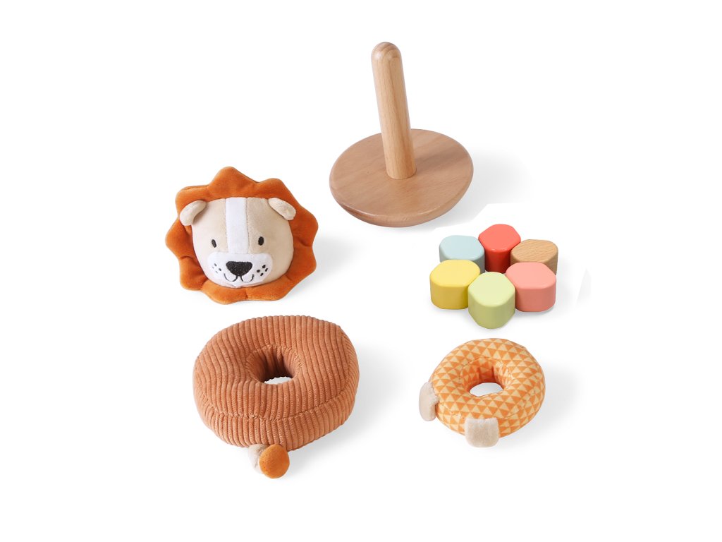 Lvíček zve děti ke hře plné barev, tvarů a objevování! Na dřevěnou tyčku, která tvoří tělo lvíčka, se postupně nasazují kroužky o více velikostech z různých materiálů i textur. Nejdřív látkový kroužek s ocáskem a nakonec plyšová hlavička lvíčka. Dokážete to nasadit správně, aby byl lvíček kompletní? Skládání rozvíjí jemnou motoriku, koordinaci ruka-oko i schopnost rozlišovat tvary, textury a velikosti. Hlavní vlastnosti: nasazování kroužků různých velikostí, materiálů i texturrozvíjí jemnou motoriku a koordinaci ruka-okopomáhá s rozpoznáváním tvarů a velikostíDoplňkové parametry