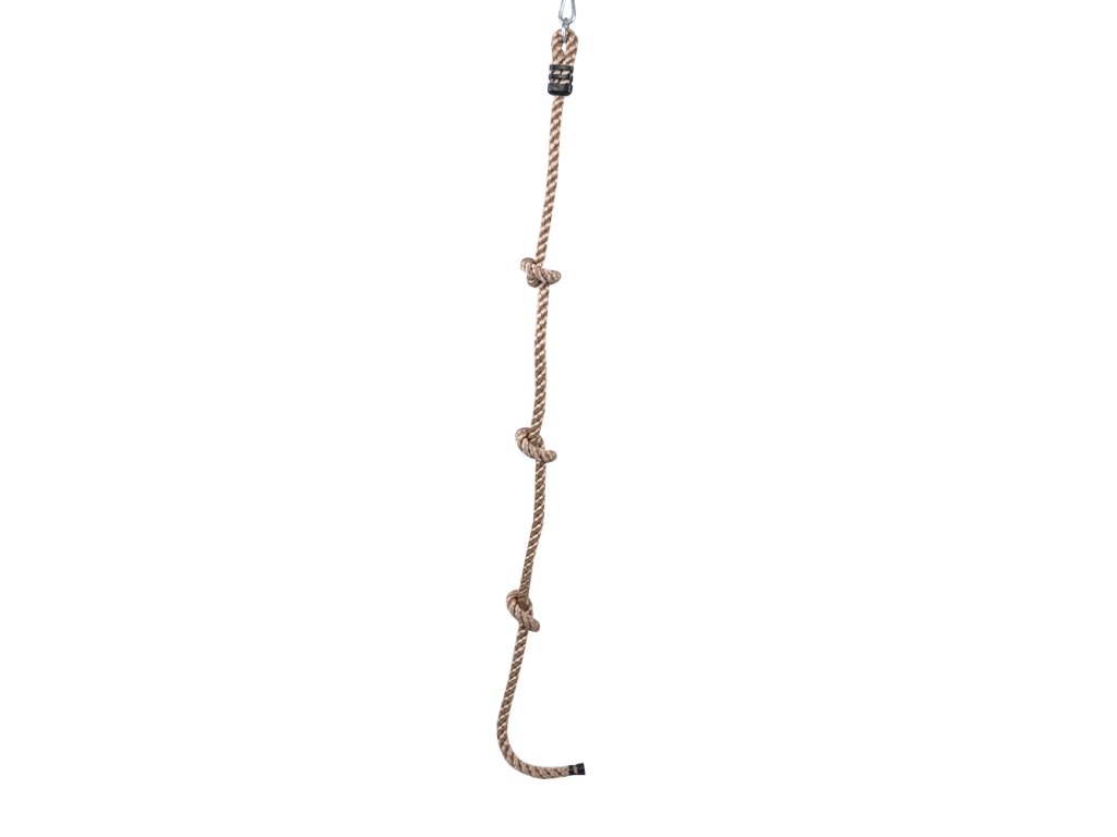 Dětské šplhací lano s uzly.Nezbytný pomocník pro objevitele venkovní zábavy na dětském hřišti nebo k domečku na stromě. Hlavní vlastnosti: nosnost: 100 kgdélka lana je 2 mpevné lano o tloušťce 2,6 cmDoplňkové parametry