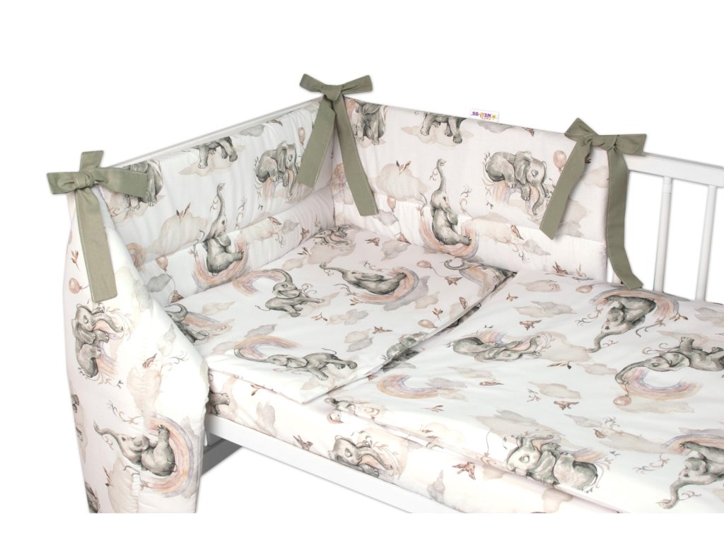3-dílná sada Mantinel s povlečením, Slon a Duha, bílá/šedá