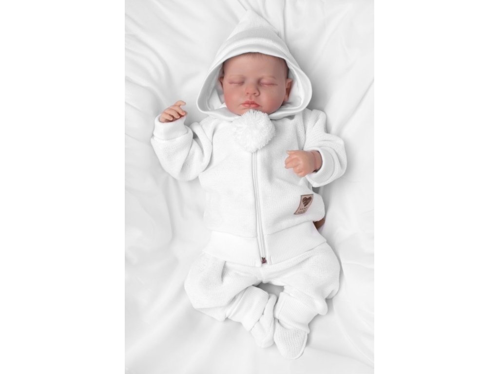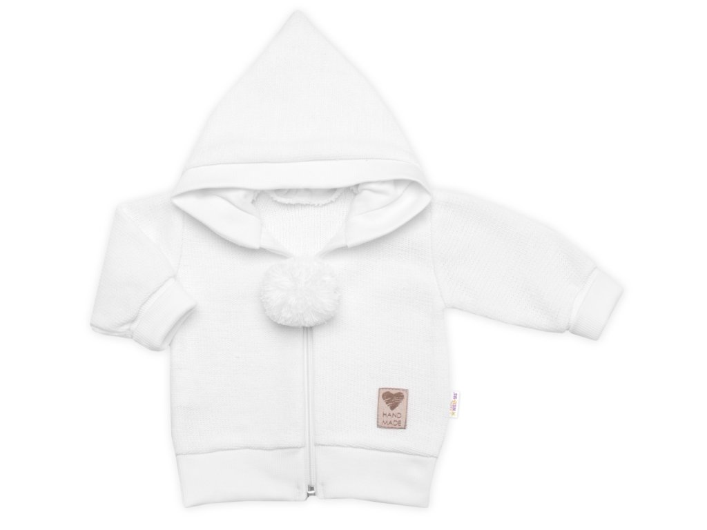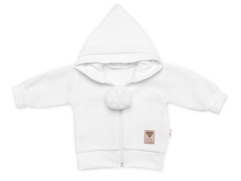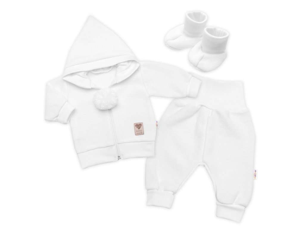 3-dílná souprava Hand made, pletený kabátek, kalhoty a botičky, bílá