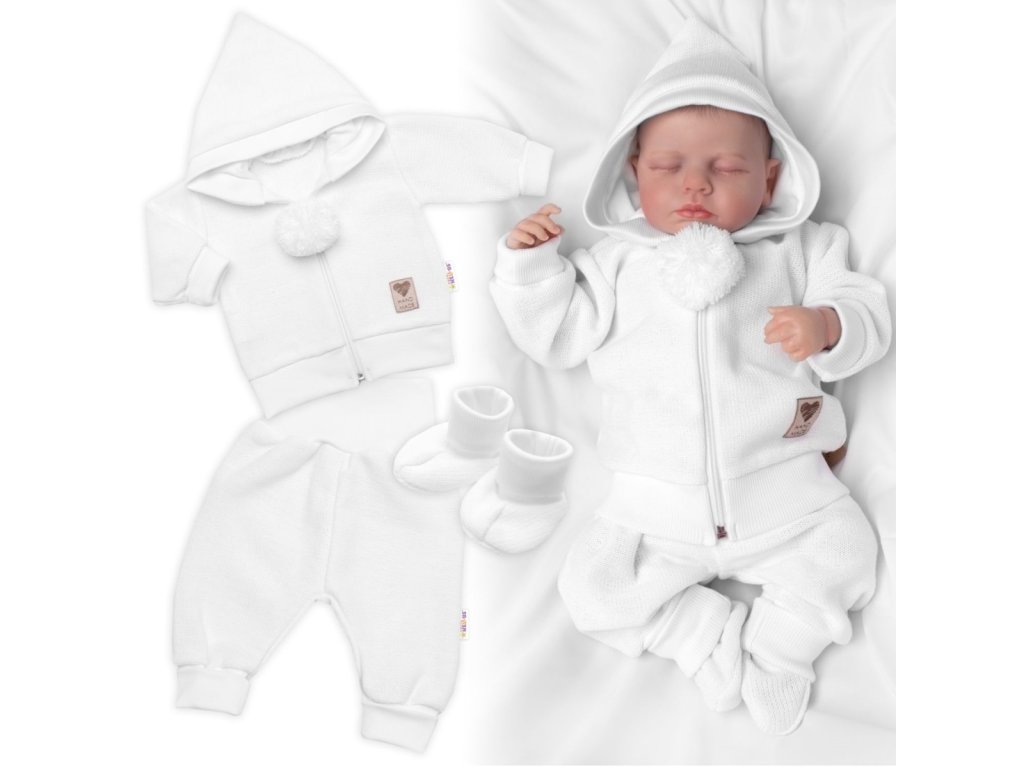 Sada obsahuje:Kabátek s kapucí, kalhoty a botičky. Baby Nellys česká značka - záruka kvality a spokojenosti. Materiál: Bavlna + akryl. Detailní rozměry: Kalhoty: Vel. 56 - délka 35 cm, pas - 16 cm x 2. Vel. 62 - délka 37 cm, pas - 17 cm x 2. Vel. 68 - délka 40 cm, pas - 18 cm x 2. Kabátek: Vel. 56 - délka 26 cm, hrudník 2 x 23 cm, rukáv od krku 23 cm. Vel. 62 - délka 28 cm, hrudník 2 x 25 cm, rukáv od krku 24 cm. Vel. 68 - délka 31 cm, hrudník 2 x 27 cm, rukáv od krku 25 cm. Uvedené rozměry se mohou lišit +- 1-2cm.Doplňkové parametry