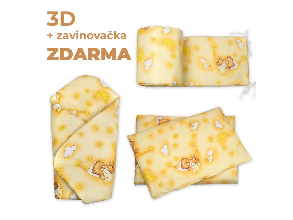 3D Mantinel s povlečením + zavinovačka zdarma, Medvídek krémový