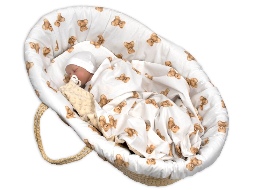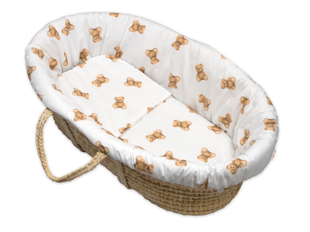3D sada do koše, kočárku - bavlna, Míša - bílá s potiskem