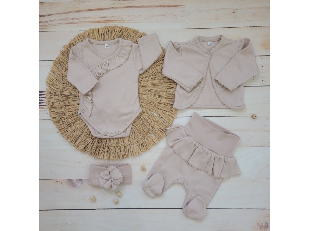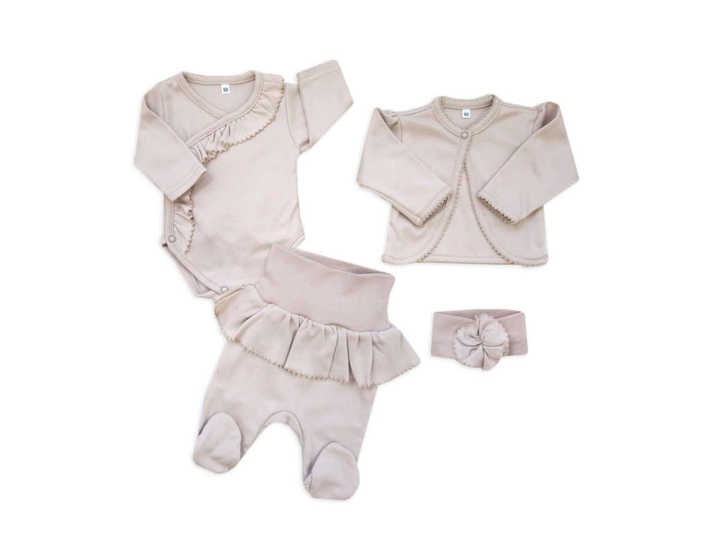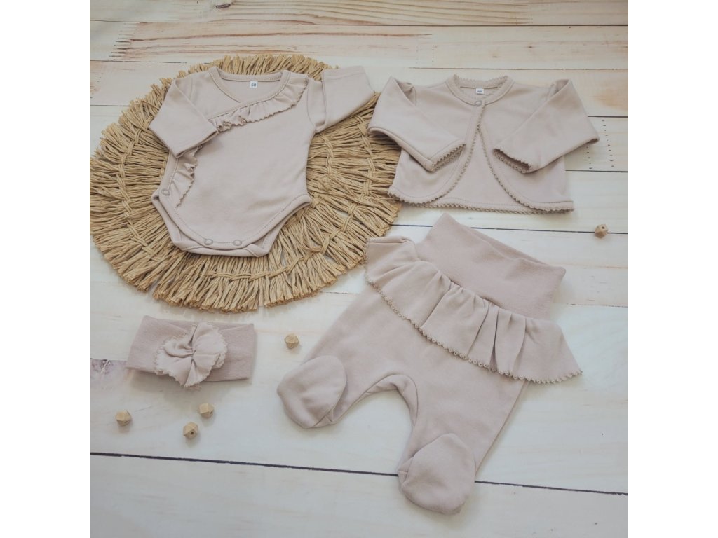 4-dílná bavlněná sada pro miminko do porodnice, béžová