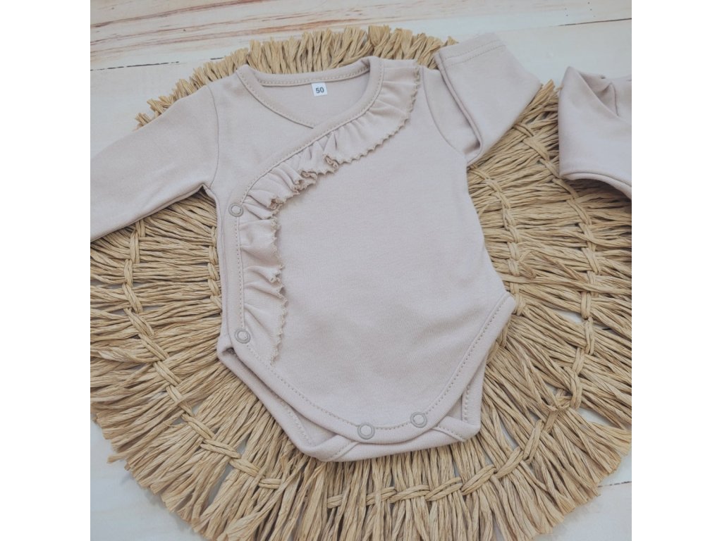 Materiál: 100% bavlna (Vysoce kvalitní měkká bavlna). Souprava obsahuje: - body s dlouhým rukávem, celorozepínací. Volánek mu dodává kouzlo a styl. - kabátek ve stylu bolerka je výjimečně okouzlujícím prvkem této soupravy, který rozhodně dodává stylingu na eleganci. - polodupačky s širokým volánkem jsou krásným doplňkem každého dívčího stylingu. Kombinují pohodlí a eleganci a široký pásek dobře drží na bříšku a zároveň chrání pupík. Tato výbavička je dokonalou sadou pro první dny života vašeho miminka. Ideální nejen na odchod z nemocnice, ale i jako dárek. Kombinuje funkčnost s elegantním vzhledem. Detailní rozměry: Polodupačky: Vel. 50 - délka 32 cm, pas - 13 cm x 2. Vel. 56 - délka 34 cm, pas - 15 cm x 2. Vel. 62 - délka 35 cm, pas - 16 cm x 2. Body zapínání bokem: Vel. 50 - délka 29 cm, hrudník - 20 cm x 2. Vel. 56 - délka 31 cm, hrudník - 21 cm x 2. Vel. 62 - délka 32 cm, hrudník - 22 cm x 2. Bolérko: Vel. 50 - délka 14 cm, hrudník - 21 cm x 2. Vel. 56 - délka 15 cm, hrudník - 22 cm x 2. Vel. 62 - délka 17 cm, hrudník - 24 cm x 2. Uvedené rozměry se mohou lišit +- 1-2cm.Doplňkové parametry