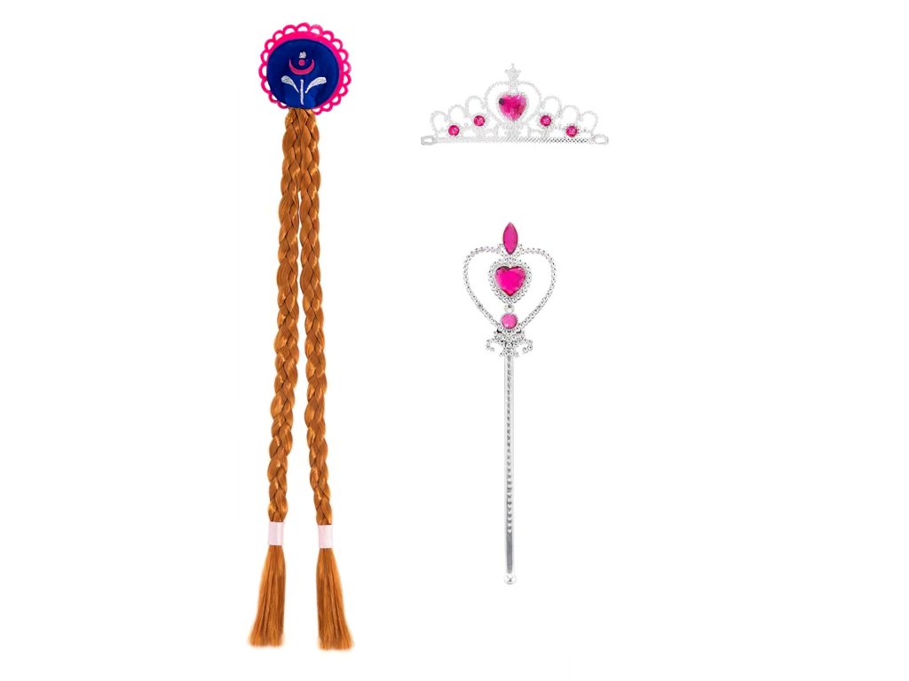 Vstupte do kouzelného světa pohádky Frozen s naší úžasnou sadou doplňků Anny. Tato sada obsahuje vše, co vaše malé princezny potřebují k tomu, aby se staly částí této nezapomenutelné pohádky. Sada zahrnuje elegantní copánky, které jim umožní přetvořit se na princeznu Ledového království, krásnou korunku, která dodá jejich vzhledu nádech královského půvabu, a žezlo s krásným růžovým diamantem ve tvaru srdce.