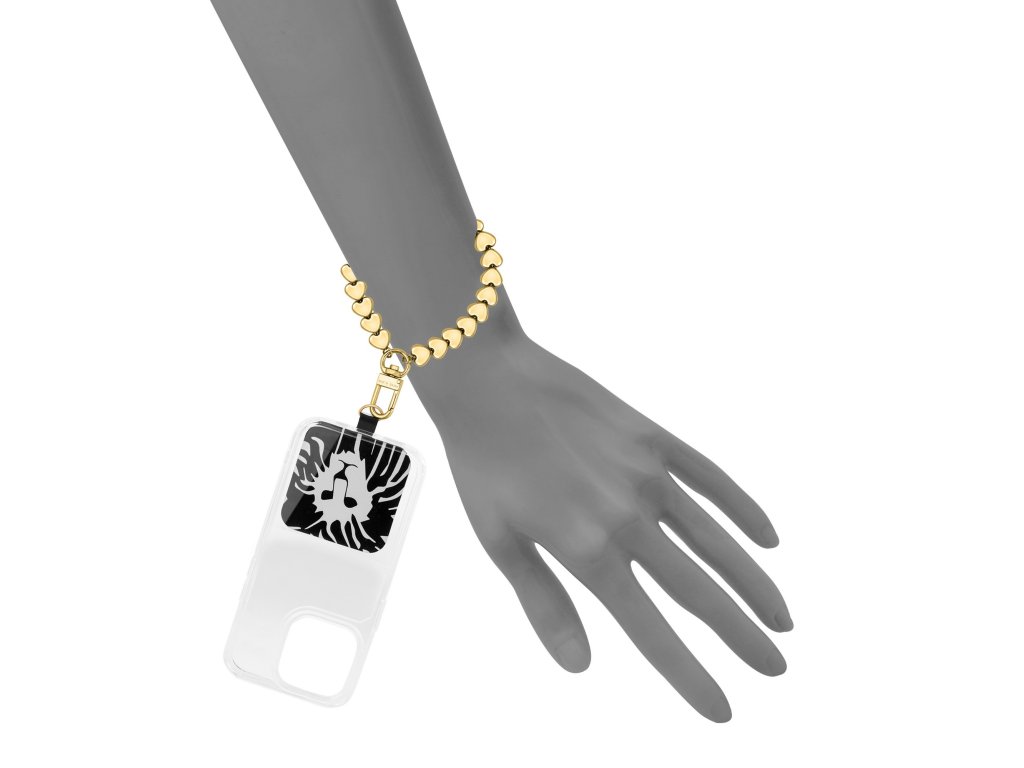 Řemínek v designu řetízku je z odolného kovu v barvě zlata a tvoří jej srdcové elementy. K telefonu se připevňuje pomocí karabinky s logem světoznámé značky Anne Klein.