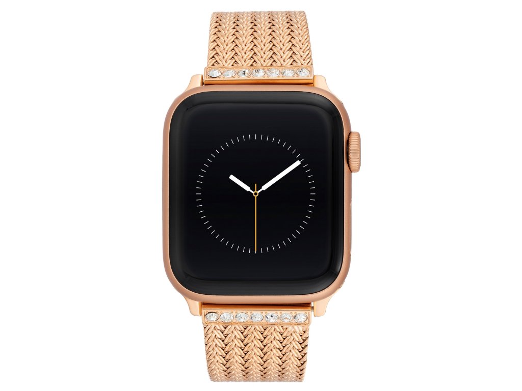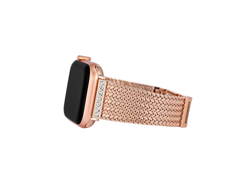 Chcete udělat se svých Apple Watch hodinek zářivý šperk? Pořiďte si tento růžovozlatý mesh řemínek s křišťály od Anne Klein.