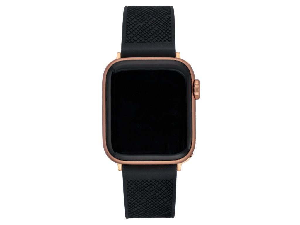 Černou barvu tohoto luxusního náramku ze silikonu doplňuje textura se stylovým saffiano vzorem.