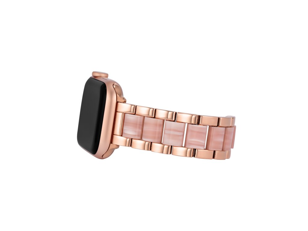 Růžovou barvu tohoto kovového řemínku doplňují elegantní mramorované středové články.