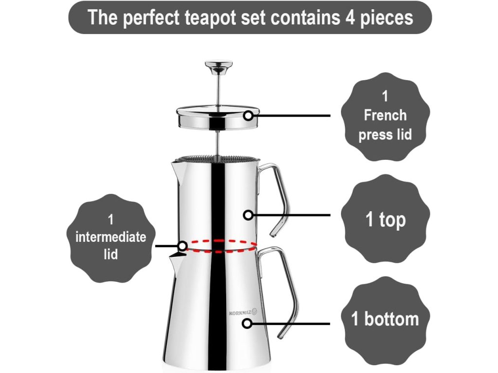 - Skvělá konvice na čaj je vhodná pro přípravu filtrované kávy nebo bylinkového čaje díky lisovacímu zařízení připevněnému k víku. Je také skvělá pro přípravu černého (tureckého) čaje.