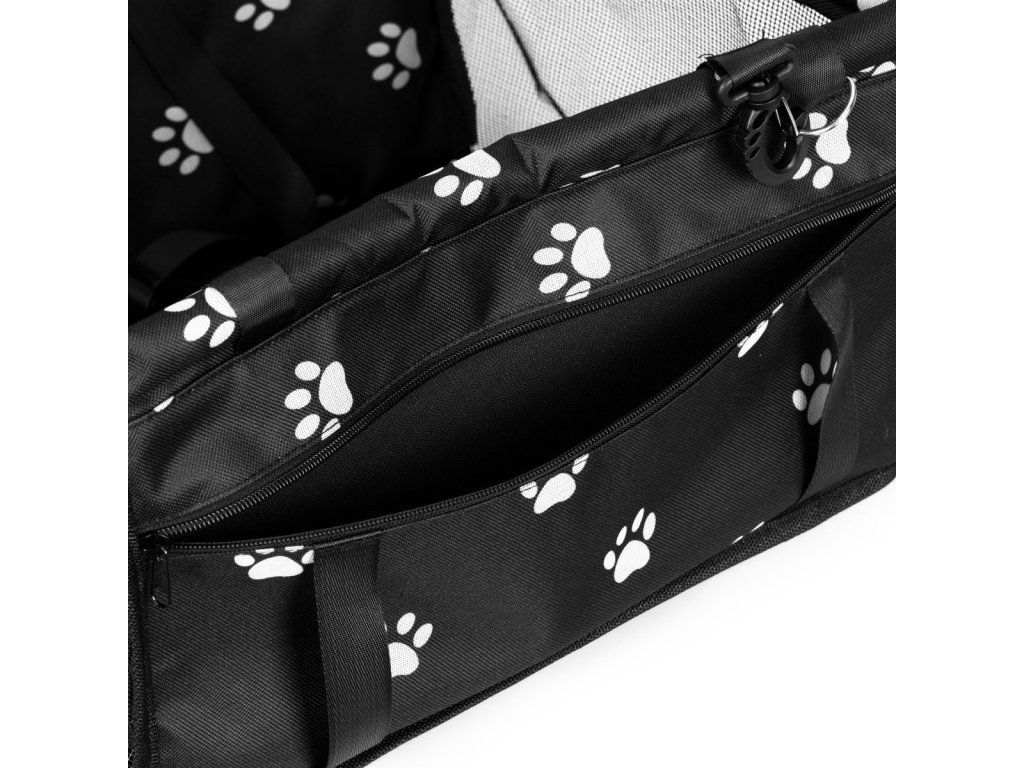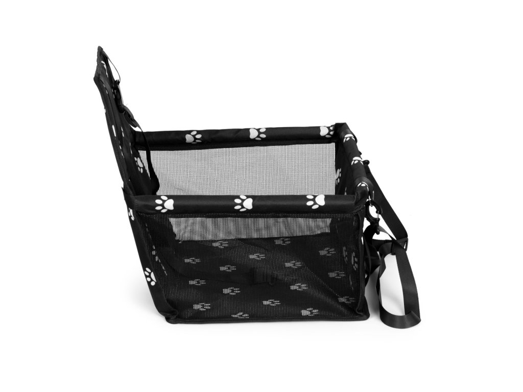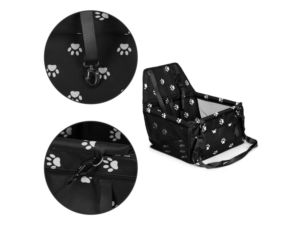 Autosedačka pro psa do auta černá – přepravní box na sedadlo Ideální pro přepravu psů a koček. Montáž na autosedadlo pomocí nastavitelných pásů. Prodyšná síťovina pro správnou cirkulaci vzduchu. Kapsa na zip na vodítko nebo pamlsky. Voděodolný a odolný materiál. Chrání čalounění před chlupy a nečistotami. Stabilní konstrukce a bezpečné uchycení. Praktická autosedačka pro psa zajišťuje pohodlné a bezpečné cestování. Upevňuje se k opěrce hlavy a pevně drží na místě během jízdy. Součástí je popruh pro připnutí mazlíčka pro vyšší bezpečnost. Specifikace: Rozměry: 34 × 40 × 22 cm. Barva: černá. Hmotnost: 1,05 kg. Materiál: odolný voděodolný materiál. Montáž: na sedadlo automobilu. Upozornění: Výrobek používejte dle pokynů výrobce. Obal není hračka, po rozbalení jej odstraňte z dosahu dětí.Doplňkové parametry