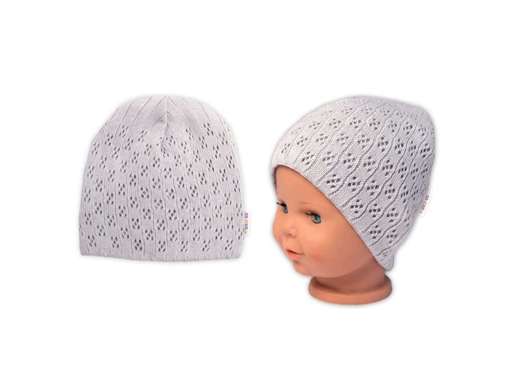 Ažurková čepice, dvouvrstvá, bavlna, Baby Nellys - šedá