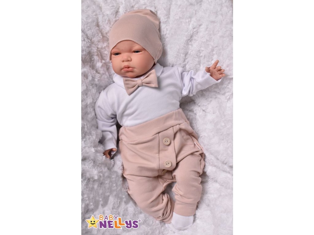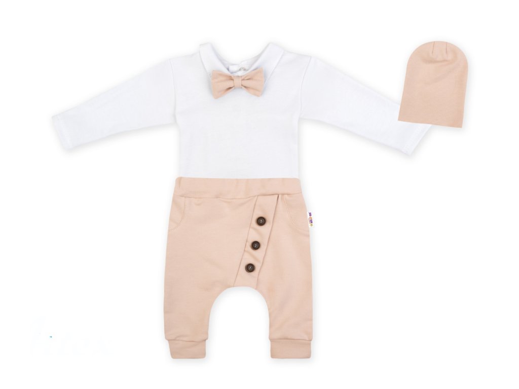 Baby Nellys 3-dílná sada Hubert, body s motýlkem dl.rukáv, tepláčky a čepička - béžový