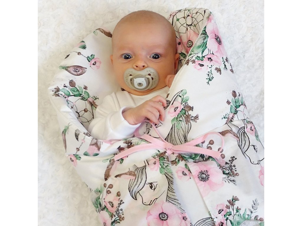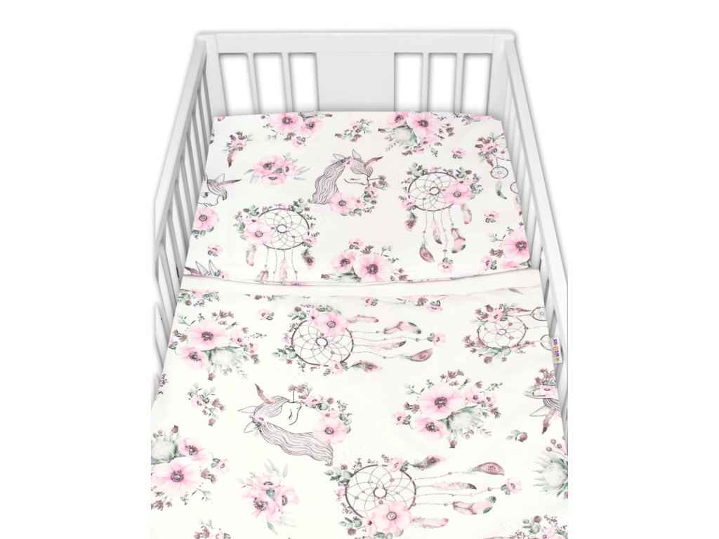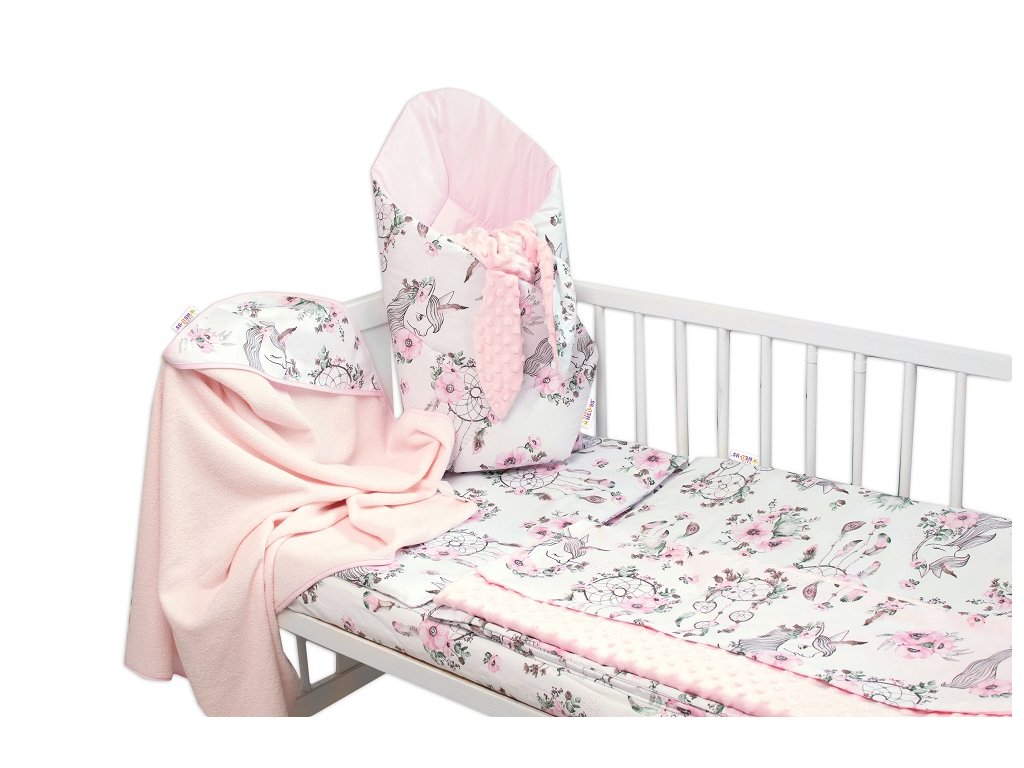 Baby Nellys 6-ti dílná výhod. sada s dárkem pro miminko, 120x90 Sny Jednorožce, růžová