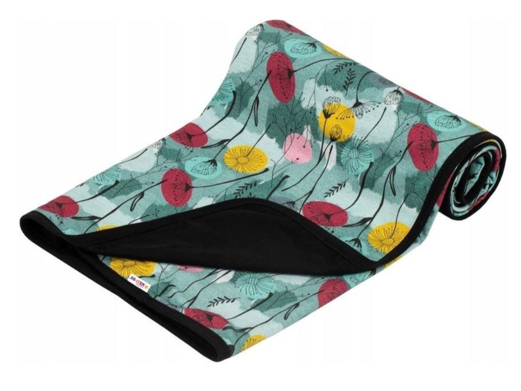 Baby Nellys Dětská bavlněná dvouvrstvá deka, Louka, zelená/černá