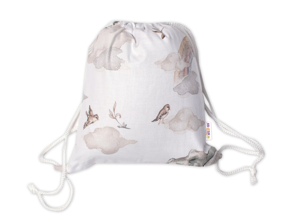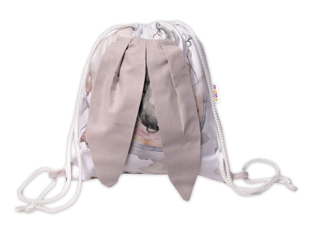 Baby Nellys Dětský bavlněný batůžek s ušima, Slon a duha, bílý