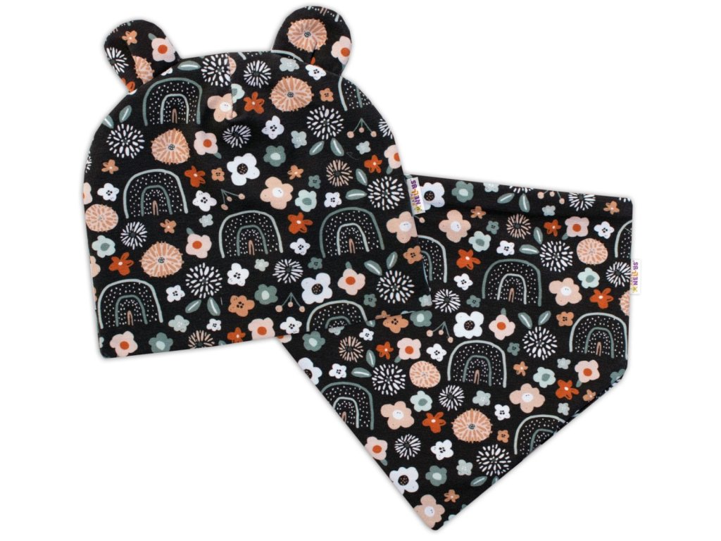Čepička Baby Nellys s šátkem. Materiál: 98% bavlna + 2% elasten. 1. Jakost. Rozměry čepiček: Vel. cca 38-42 cm, obvod hlavičky 2 x 18,5 cm. Vel. cca 42-44 cm, obvod hlavičky 2 x 20,5 cm. Šátek Vel. UNI - 42 x 21 cm. Zapínání na patentky, 2 úrovně zapínání.Doplňkové parametry