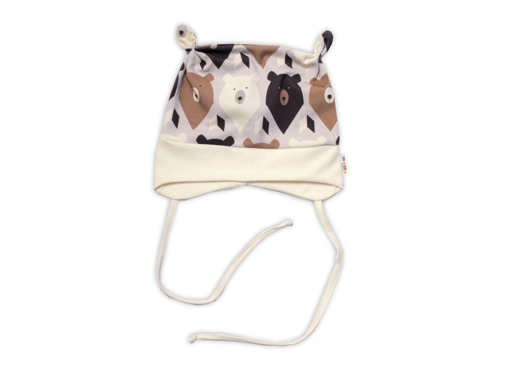 Baby Nellys Kojenecká čepička uzlíček na zavazování - Medvědi, hnědá, vel. 68/74