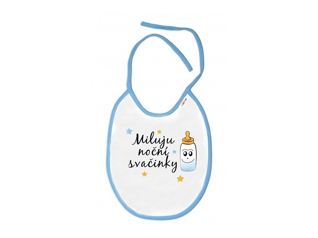 Baby Nellys Nepromokavý bryndáček Miluju noční svačinky, 24 x 27 cm - bílý s modrým lemem