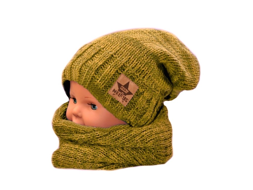 BABY NELLYS Podzimní/zimní čepice s komínkem - hořčicový melír