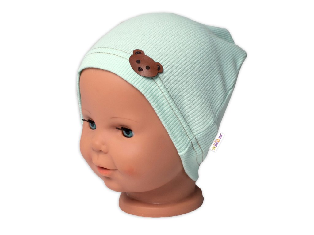Baby Nellys Žebrovaná čepice Medvídek - mátová