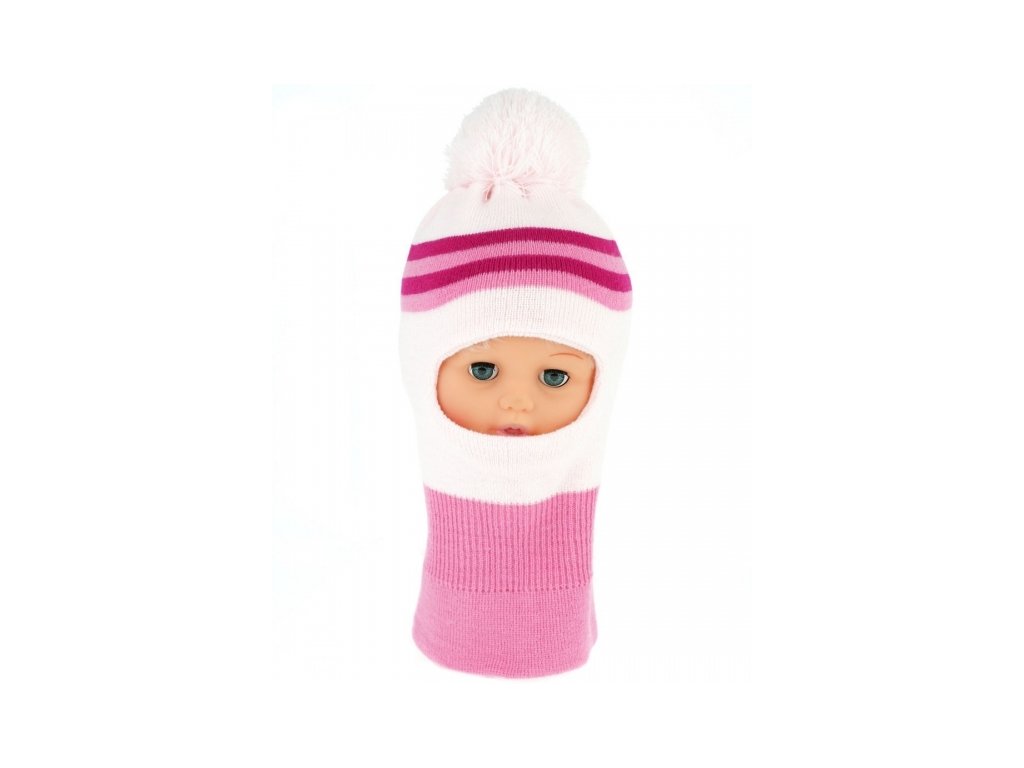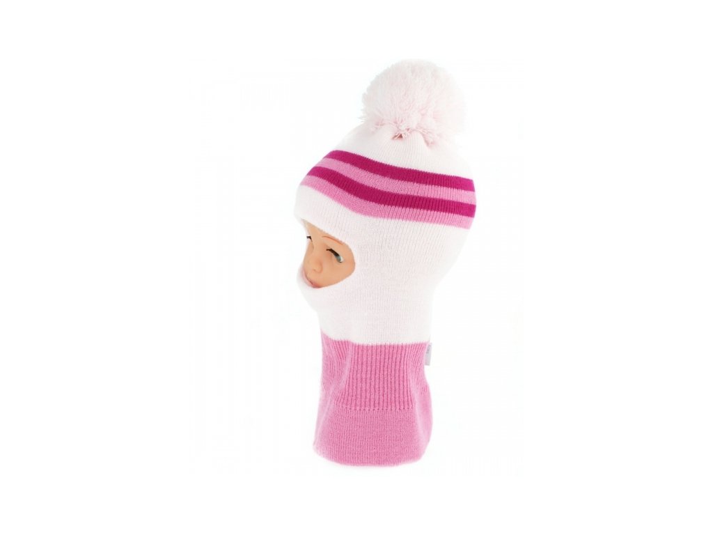 BABY NELLYS Zimní čepička/kukla s bambuli - sv. růžová s proužky
