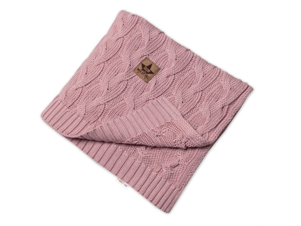 Bambusová dětská pletená deka Baby Nellys, vzor pletený cop, 80 x100 cm, pudrová