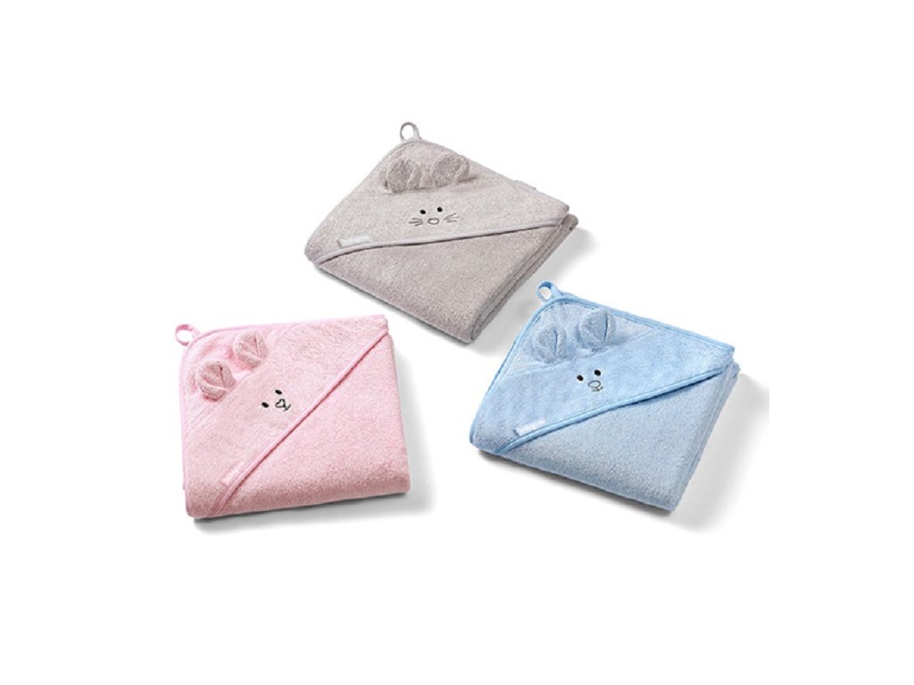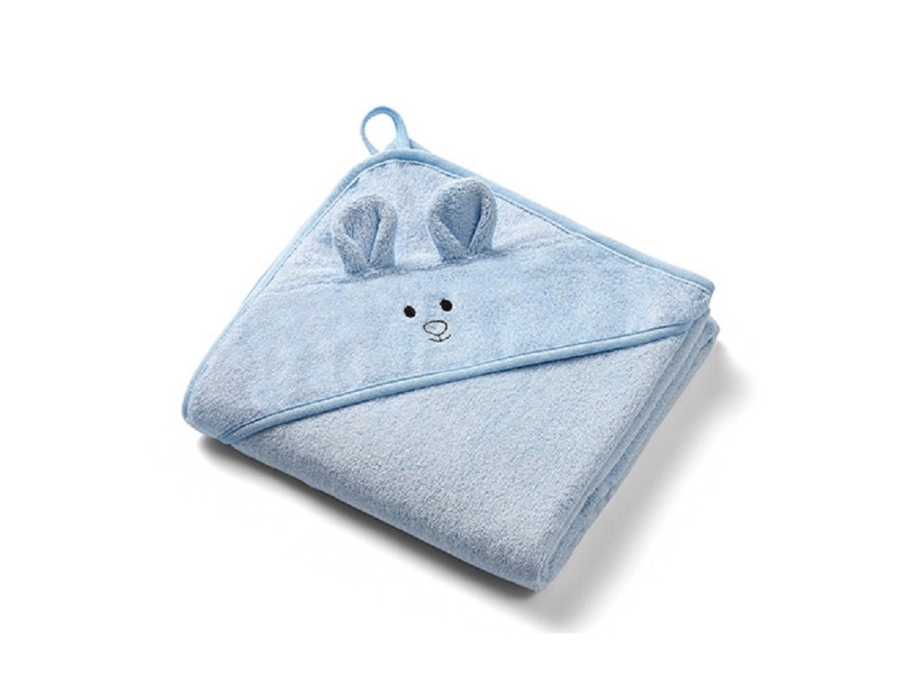 Bambusová osuška pro miminko s kapucí Myška, 100x100cm - modrá