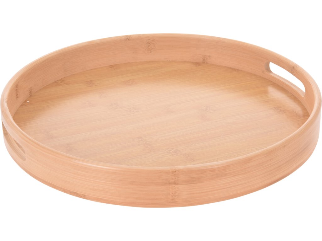 Stylový dřevěný podnos z bambusového dřeva. Chráněn impregnací, která zabraňuje absorpci vlhkosti. Je ideální pro ovoce, sladkosti, hlavní chod, popřípadě na něm můžete vytvořit vkusnou dekoraci. Průměr podnosu 40 cm, výška 5 cm.