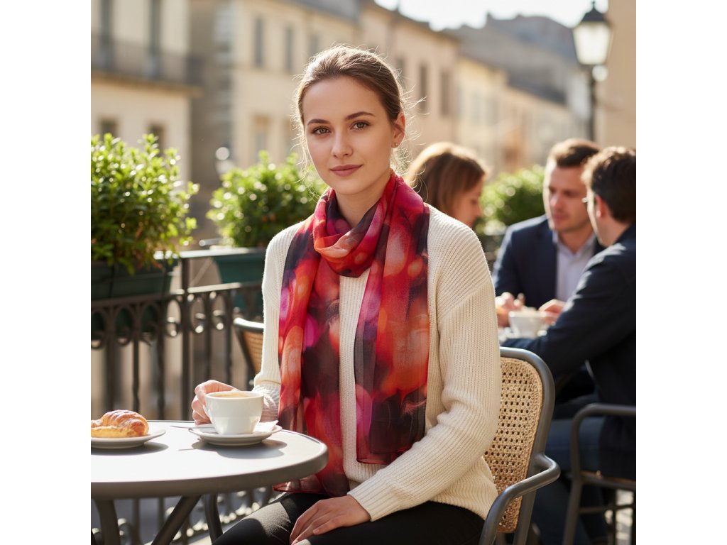 Šála přináší zářivé barvy, které rozjasní každý outfit a zaujmou na první pohled. Pocit hedvábí