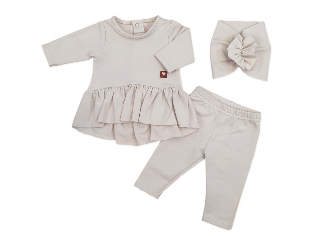 Bavlněná sada, 3D, tunika, legíny, turban - sv. béžová
