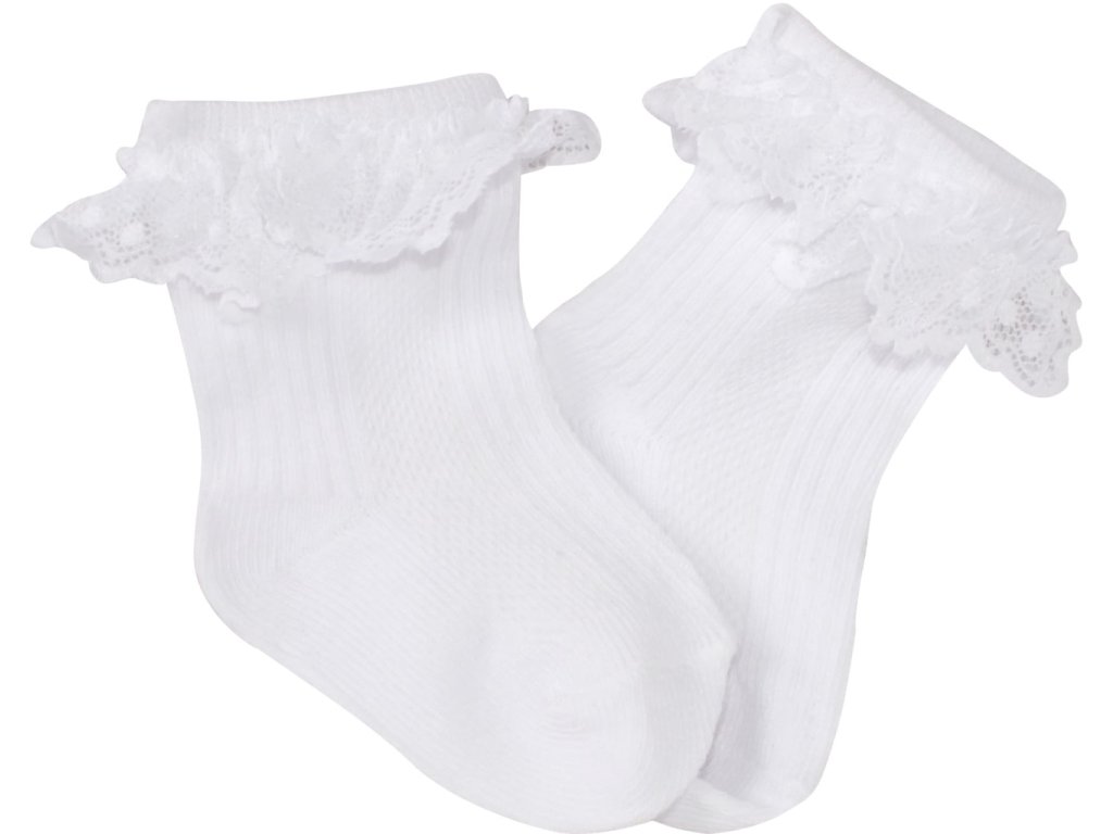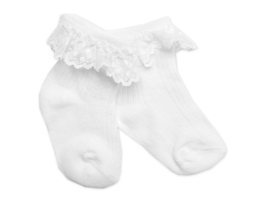 Bavlněné ponožky s krajkovým volánkem Baby Nellys, bílé