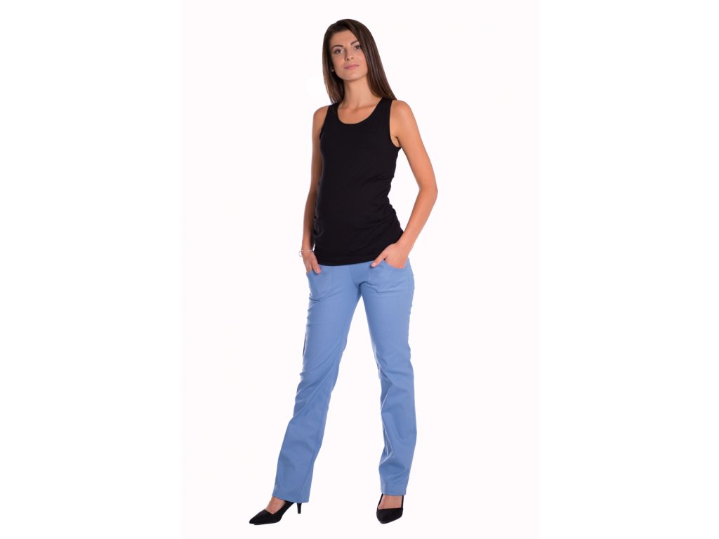 Be MaaMaa Bavlněné, těhotenské kalhoty s kapsami - sv. modré