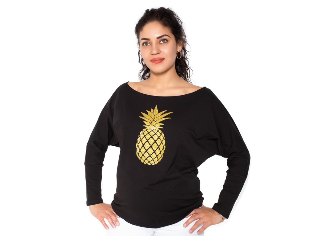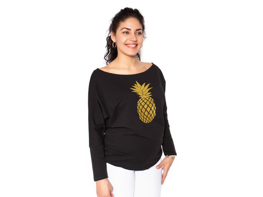 Be MaaMaa Těhotenská mikina, triko Ananas - černé, vel. XS