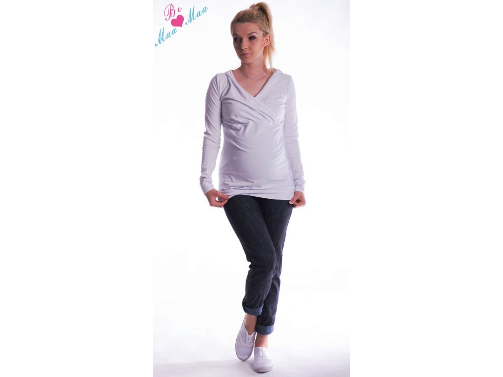 Be MaaMaa Těhotenská mikina s kapucí OLINA - bílá