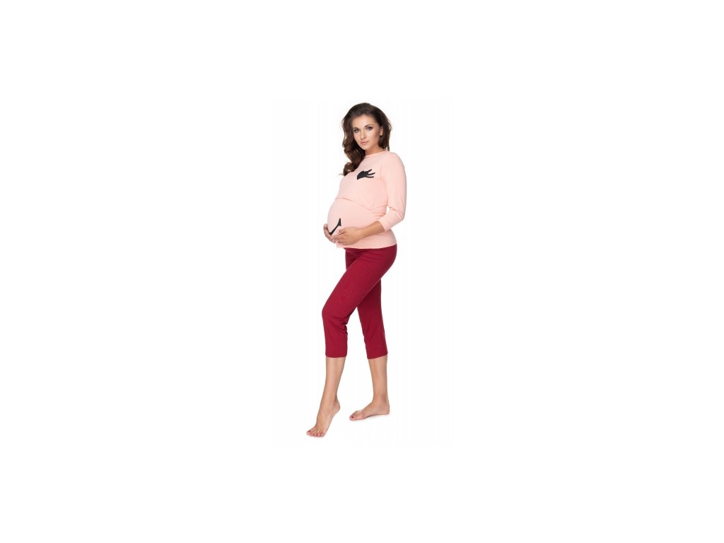 Be MaaMaa Těhotenské, kojící pyžamo 3/4 s dl. rukávem - růžovo/bordo