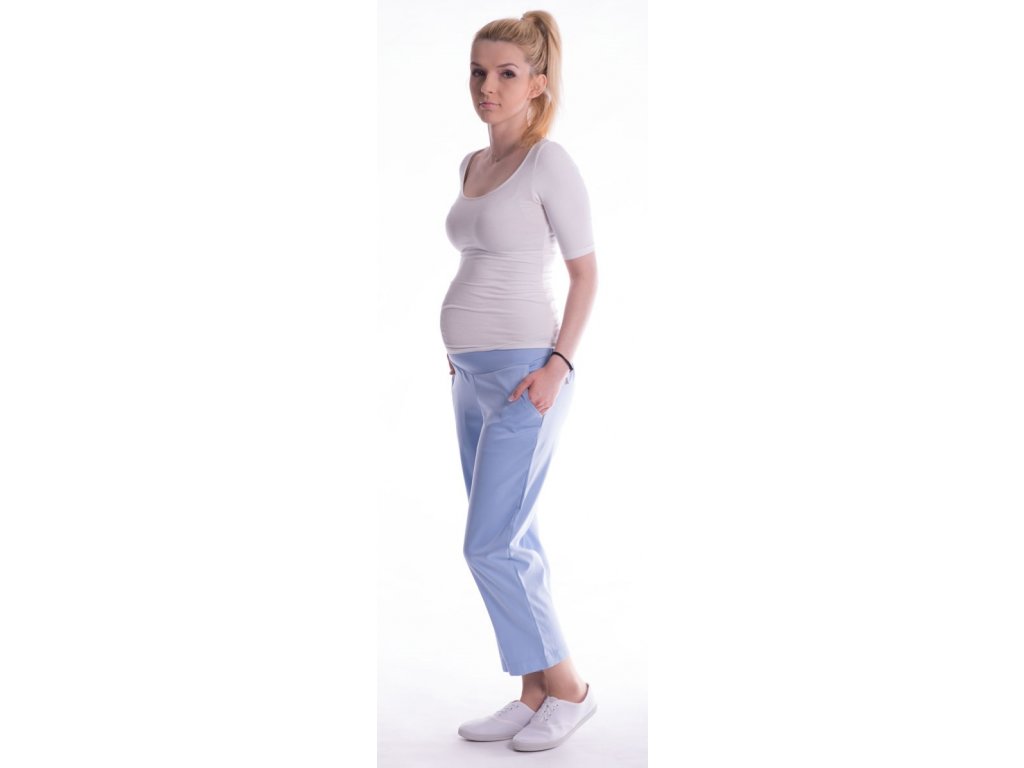 Be MaaMaa Těhotenské 7/8 bederní kalhoty - světle modré