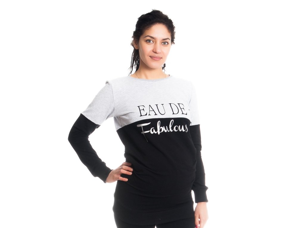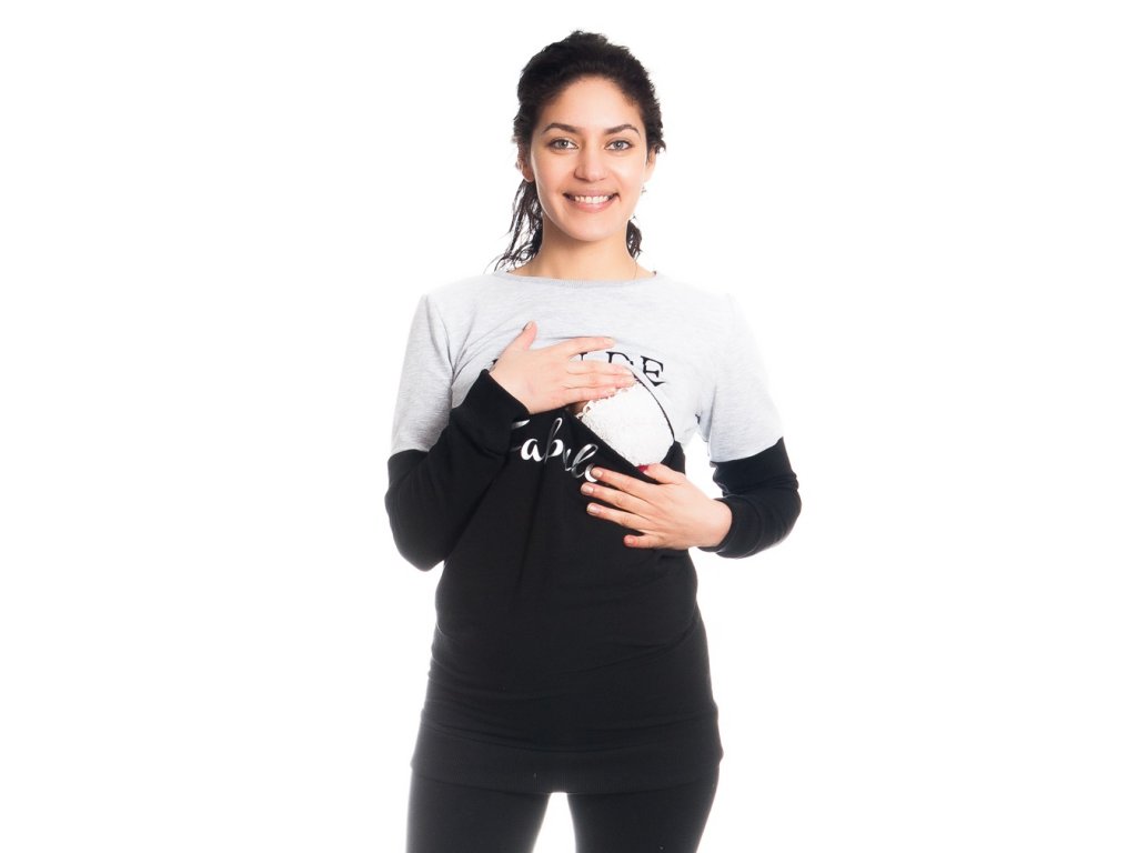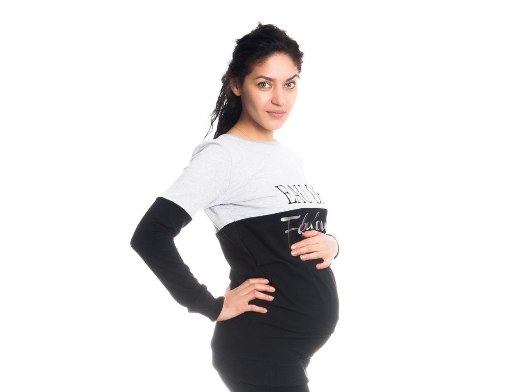 Be MaaMaa Těhotenské a kojící triko/mikina Fabulous, dl. rukáv, černo-světle šedá, vel. XS