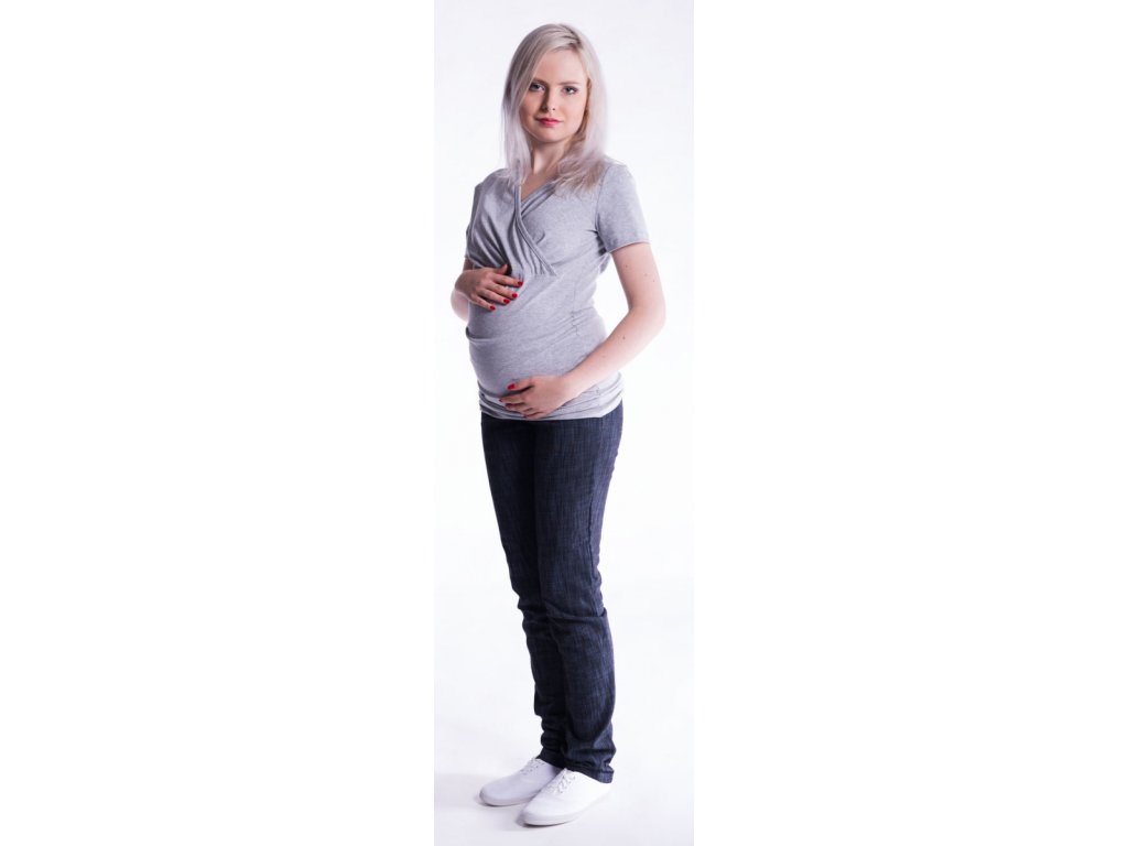 Be MaaMaa Těhotenské a kojící triko s kapucí, kr. rukáv - šedý melír