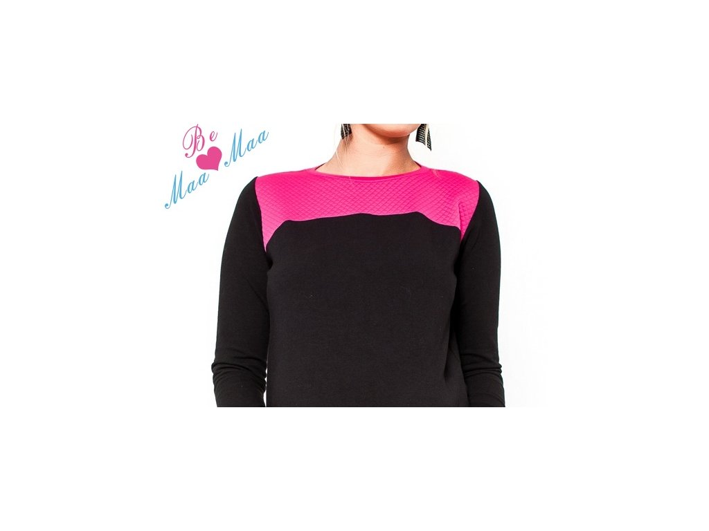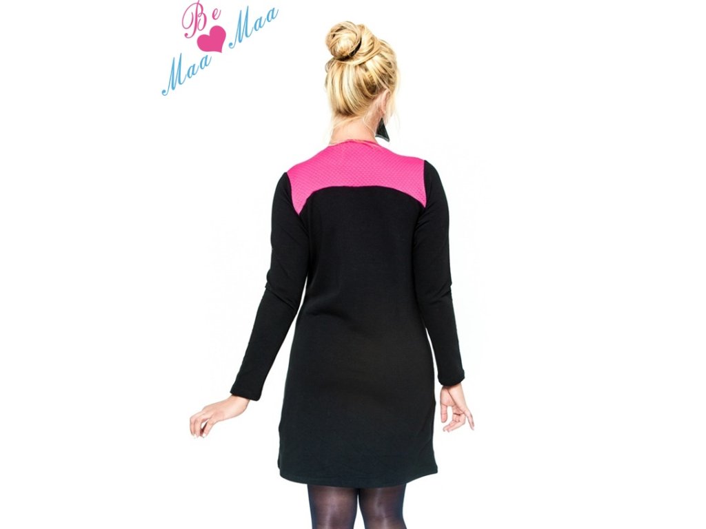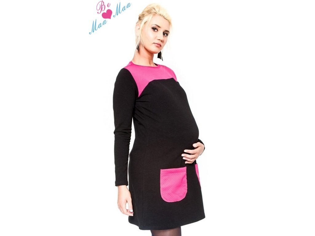 Be MaaMaa Těhotenské šaty/tunika LIZZA dl. rukáv - černá/růžová