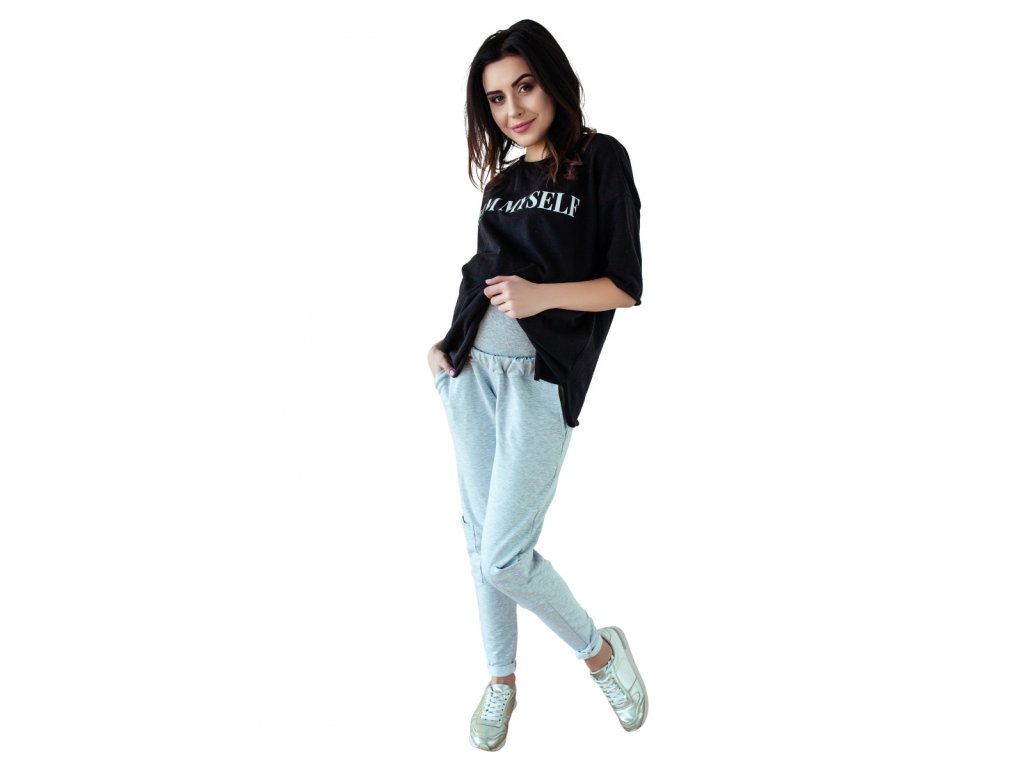 Be MaaMaa Těhotenské tepláky/kalhoty slim - šedý melírek