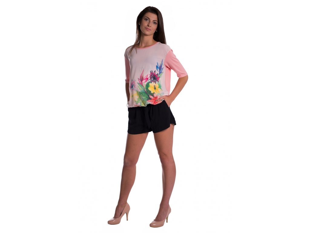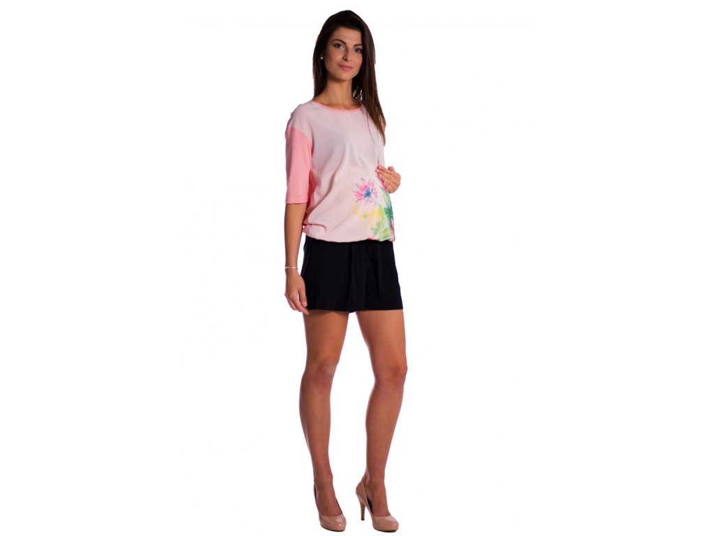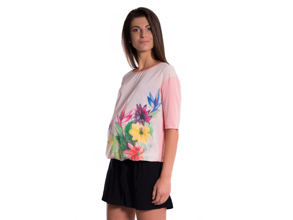 Be MaaMaa Těhotenské triko/halenka s potiskem květin - růžové