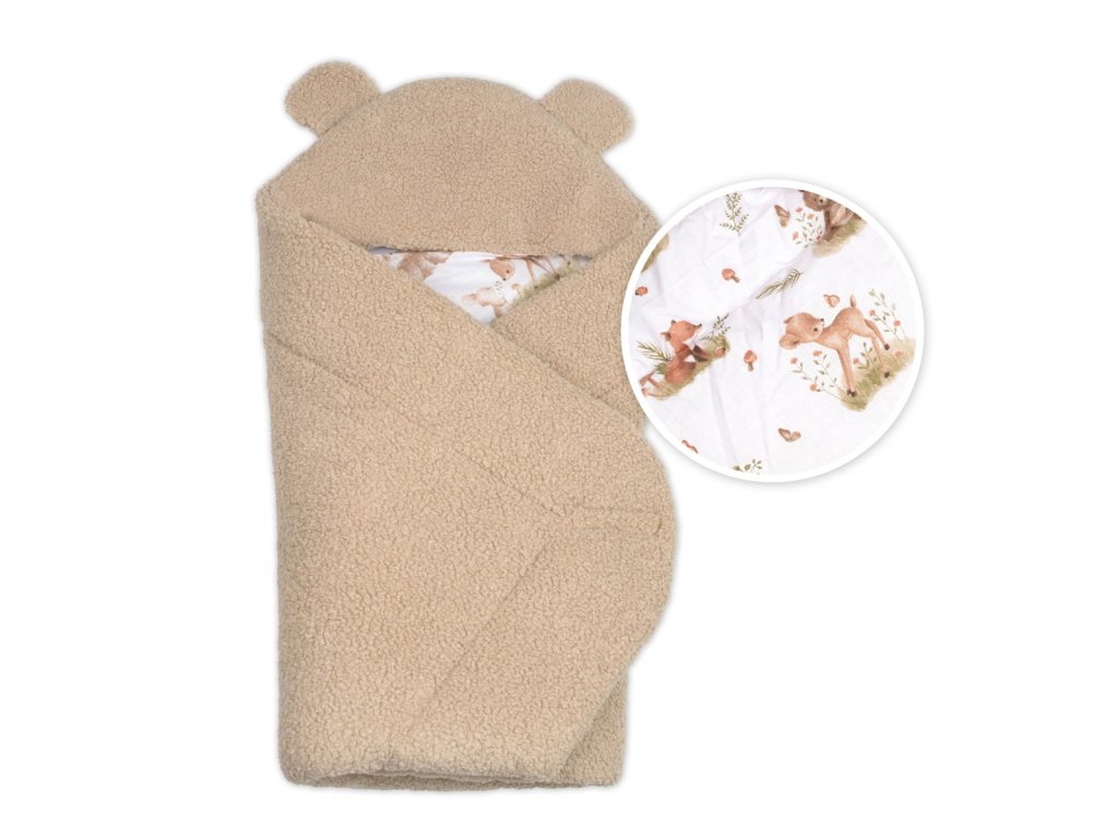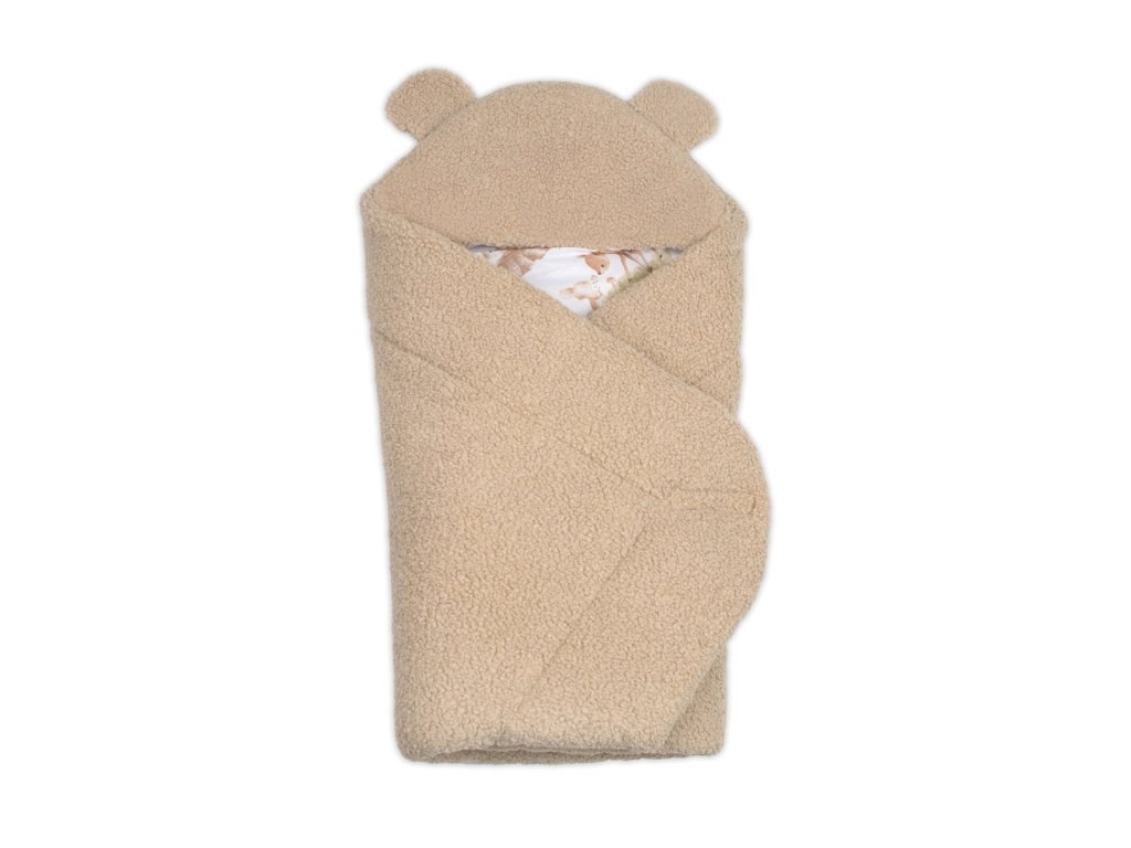 Beránková zavinovačka s kapucí bavlna/beránek, Teddy Boucle - Srnka béžová, hnědá