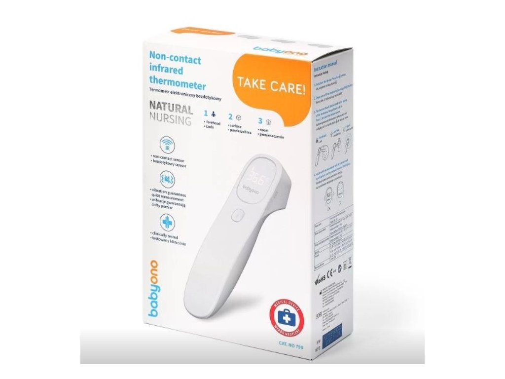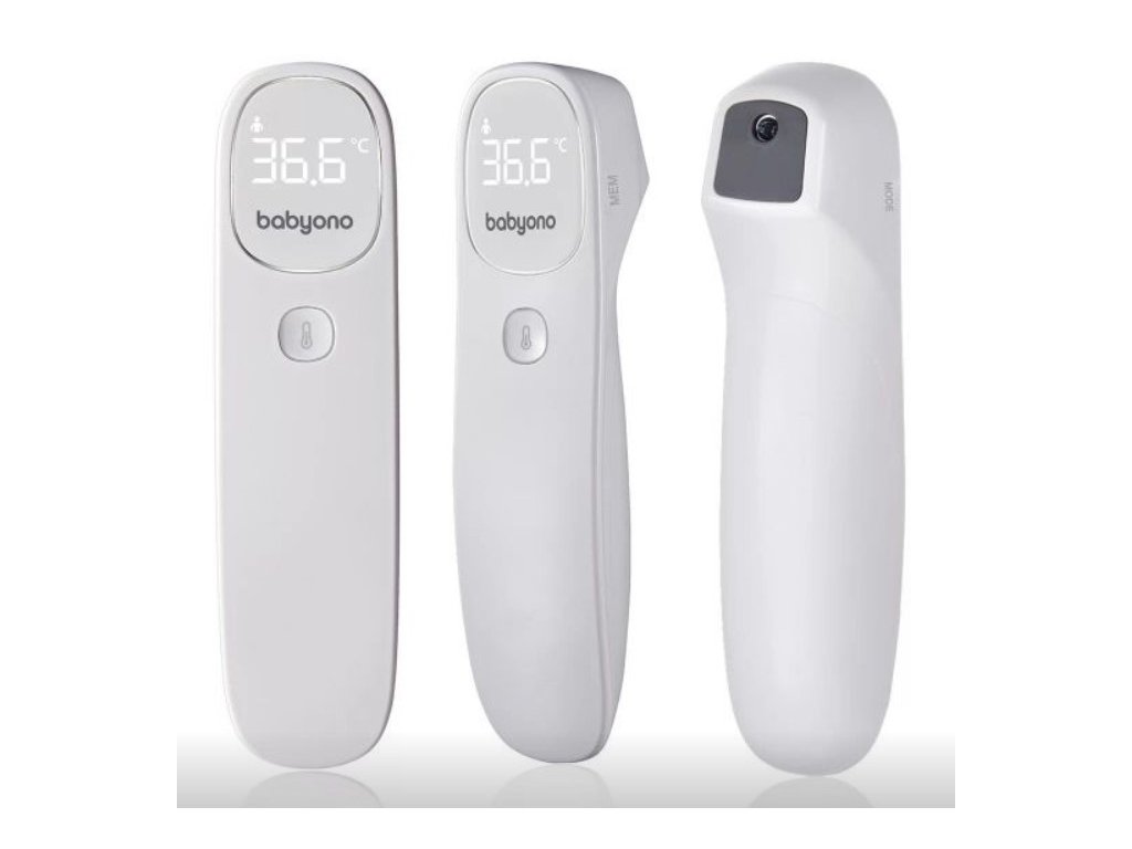 Infračervený bezdotykový teploměr. Dětský elektronický bezdotykový teploměr Baby Ono, je vysoce komfortním, přesným a rychlým řešením k měření teploty, nejen u miminka. Stylový a podsvícený LED displej usnadňuje čtení teploty i v noci. Charakteristika: - Přesné a stabilní měření pomocí moderního systému detekce infračerveného záření. - Měření teploty během 2 sekund. - Přesnost měření: +/- 0,2 °C. - Pamět posledních 32 měření. - Rozsah měření teploty: 32°C až 43°C. - Bílý LED displej. - automatický záznam údajů. - Vibrační upozornění v případě odečítání teploty nad 38 °C. - Zahrnuje uživatelskou příručku a pouzdro. - Automatické vypnutí (Doplňkové parametry