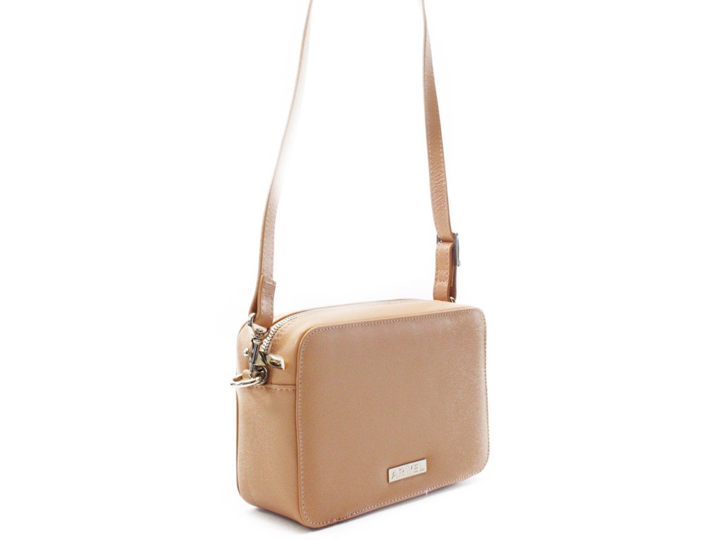 Crossbody dámská kožená kabelka chráněná zipem má tvar obdélníku. Obsahuje jednu kapsu, uvnitř se nachází malá otevřená kapsička na drobnosti. Na zadní vnější straně je zipová kapsa. Součástí kabelky je odnímatelný nastavitelný popruh.
