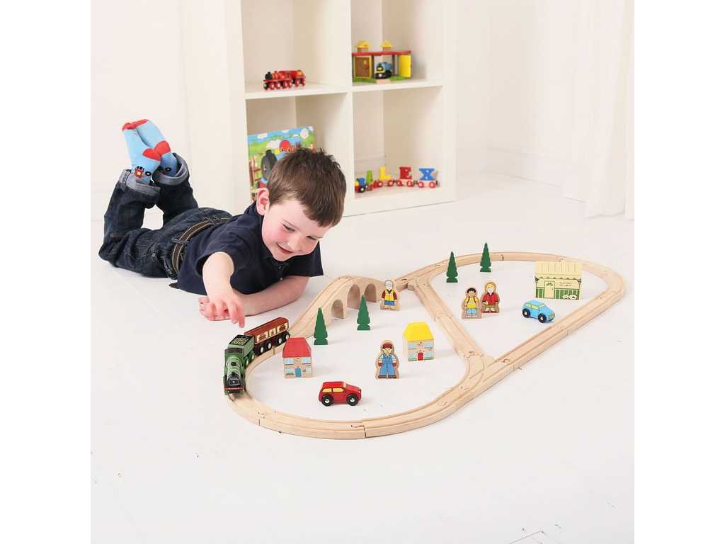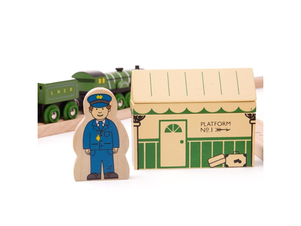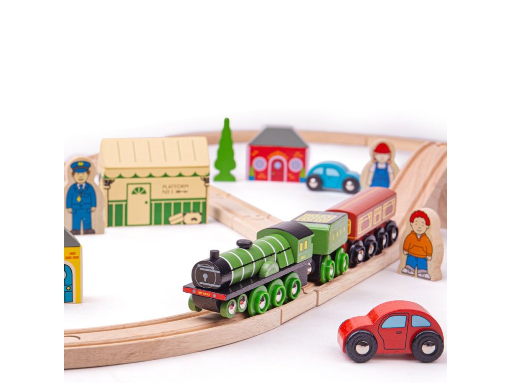 Vláček Flying Scotsman (Létající Skot) je jedním z nejznámějších vlaků své doby.Děti budou rády, že mohou obnovit ve svých rukou jeho cesty, které zahrnovaly 2.000.000 mil ve svém cyklu. Cestující mohou nakoupit jízdenku na retro nádraží a nastoupit tak do tohoto krásného vlaku. Jen tak si mohou vychutnat výlet po celé dráze, nahoru a dolů, viadukty, přírodními sceneriemi včetně domů a aut podél cesty. Tato nádherná dřevěná železniční souprava je ideální pro milovníky vlaků a pomáhá podporovat kreativní a nápadité hry. Hlavní vlastnosti: vláčkodráhy a jejich příslušenství značky Bigjigs Rail je možno kombinovat se všemi dalšími dřevěnými vláčkodráhami na trhuvyrobeno z kvalitních a zodpovědně získaných přírodních materiálůodpovídá současným evropským bezpečnostním normámpodporuje představivost, obratnost a koordinaciDoplňkové parametry